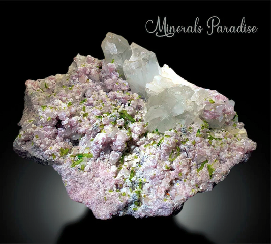 Tourmaline Crystals on Pink Kunzite, Green Tourmaline, Natural Kunzite, Kunzite Stone, Kunzite Specimen from Afghanistan - 663 gram