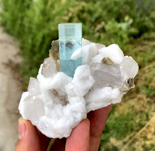 Transparent Blue Aquamarine on Quartz Mica and Feldspar from Shigar valley Pakistan - 212 gram