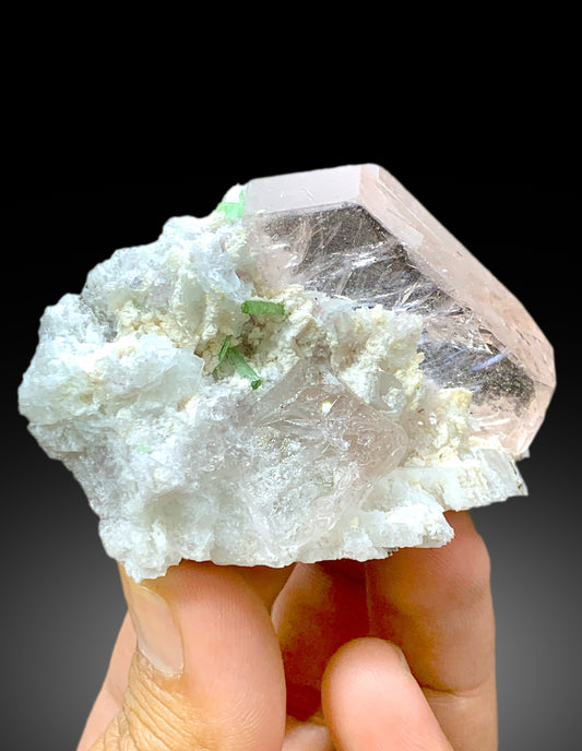 Transparent Pink Color Morganite with Green Tourmalines and Albite, Morganite Specimen from Dara-i-Pech Afghanistan - 105 gram