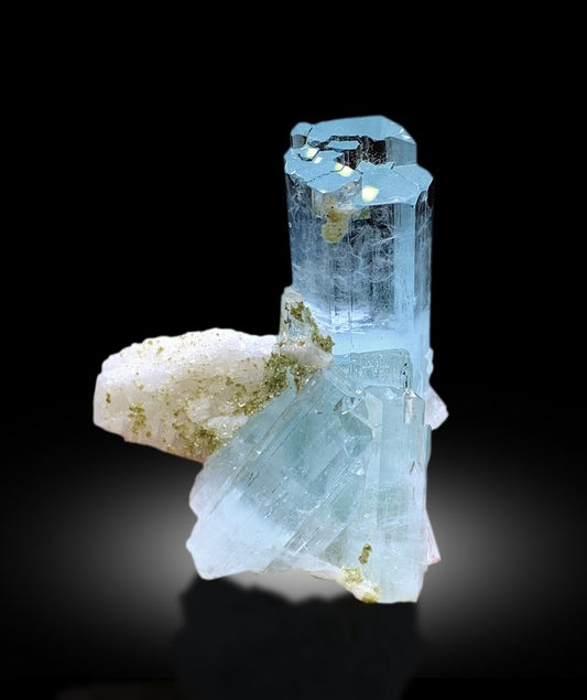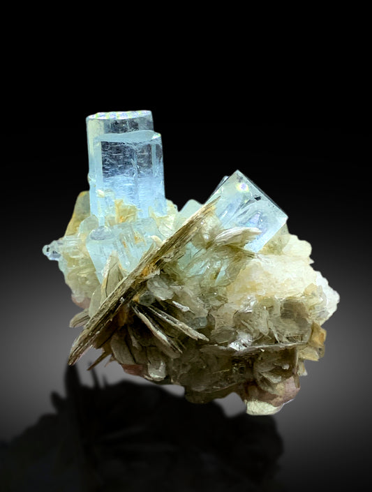 Transparent Sky Blue Color Aquamarine Twinned Crystals with Mica from Nagar Mine Skardu Pakistan - 46 gram
