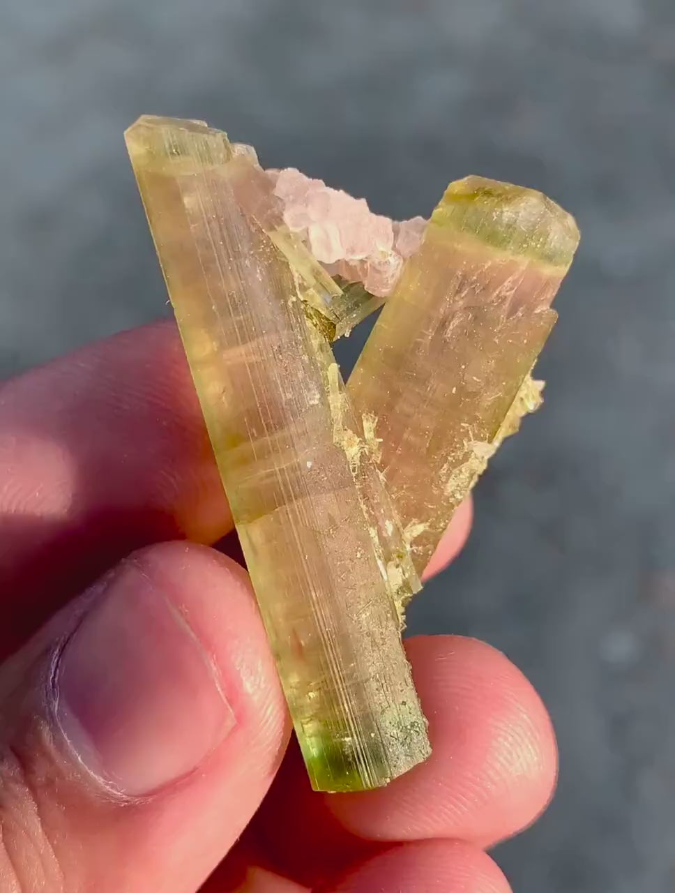 V Shape Bicolor Kunzite Crystal from Afghanistan - 315 gram