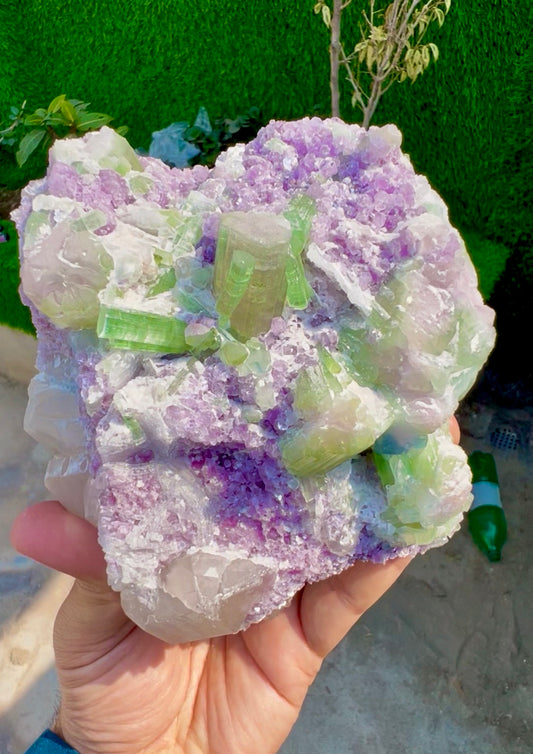 Watermelon Tourmaline Crystals with Lepidolite, Tourmaline on Qyartz, Natural Tourmaline, Mineral Specimen 697 g