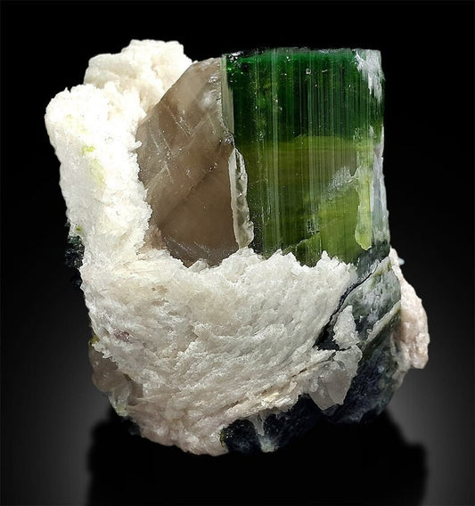 Watermelon Tourmaline, Natural Tourmaline, Crystal with Smky Quartz Albite Mineral Specimen from Paprok Afghanistan - 242 g , 68*5146 mm