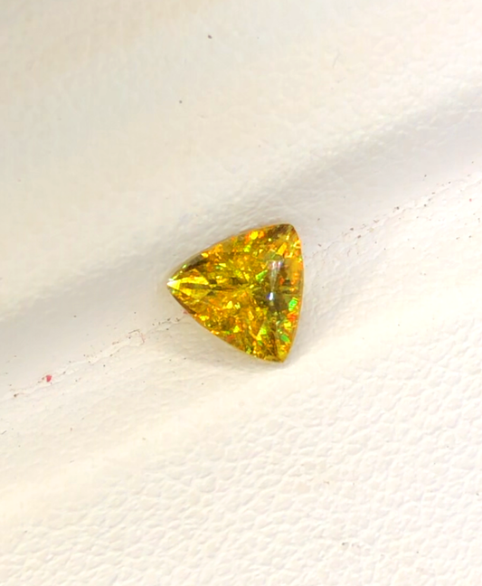 Yellow Full Fire Titanite Sphene Gemstone, Loose Gemstone, Triangle Shape Faceted Rare Sphene - 0.75 CT