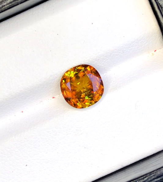 Yellow Full Fire Titanite Sphene Gemstone, Loose Gemstone, Round Cut Faceted Rare Sphene - 1.45 CT