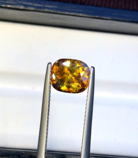 Yellow Full Fire Titanite Sphene Gemstone, Loose Gemstone, Cusshion Cut Faceted Rare Sphene - 2.60 CT