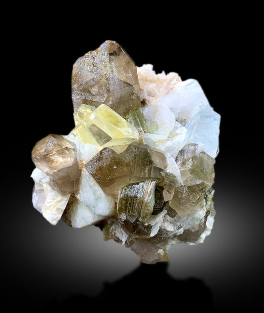 Yellow Triphane Kunzite with Aquamarines, Smoky Quartz and Mica, Kunzite Specimen, Raw Mineral, Kunzite from Afghanistan - 685 gran
