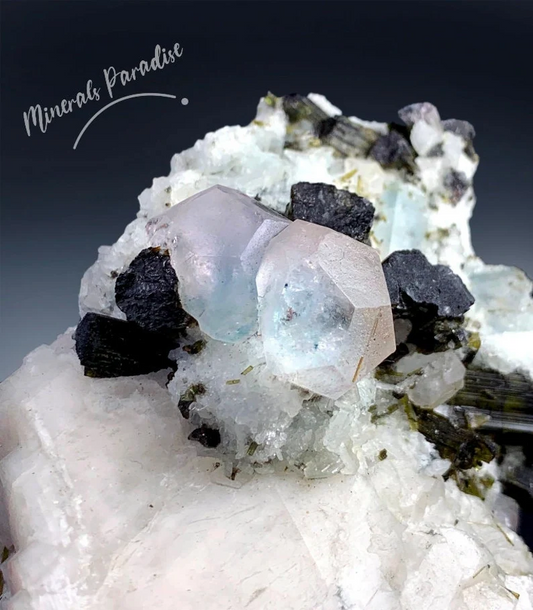 AquaMorganite, Morganite var Aquamarine, Bicolor Beryl, AquaMorganite With Schorl and Albite From Skardu Pakistan - 355 gram