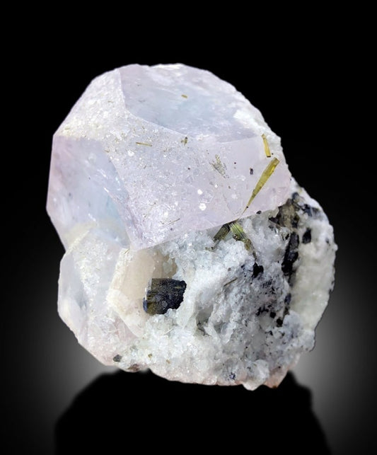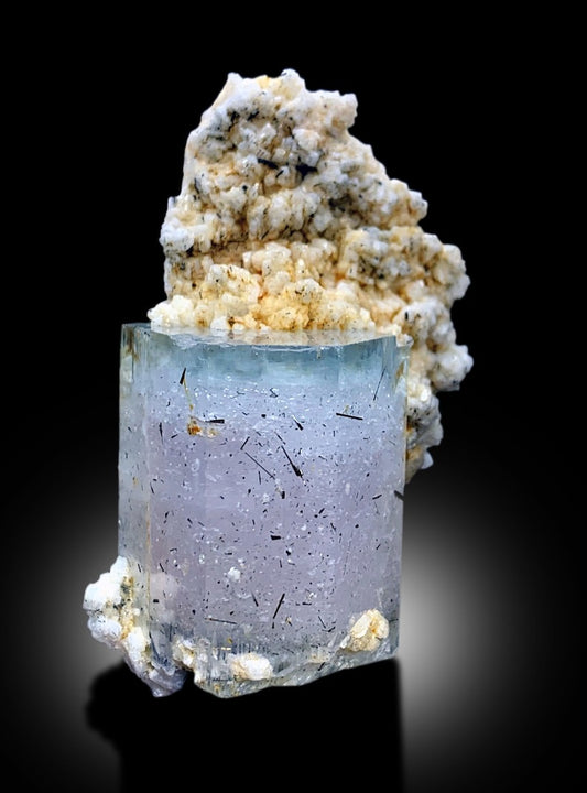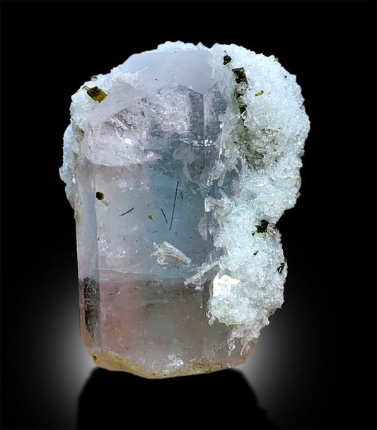 Terminated AquaMorganite With Schorl and Feldspar Mineral Specimen From Skardu Pakistan - 123 gram