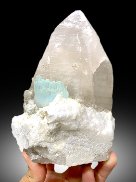 Bicolor Beryl, AquaMorganite Crystal with Quartz, Morganite var Aquamarine with Etched Terminations, Scepter AquaMorganite Specimen, 417 g