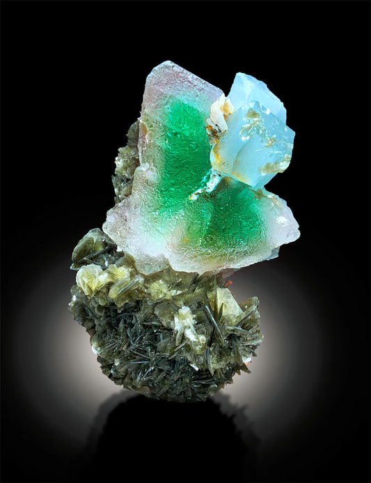 Bicolor Fluorite with Aquamarine and Mica, Fluorite Crystal, Aquamarine Specimen, Pink and Green Fluorite,Fluorite Specimen, 1059 gram