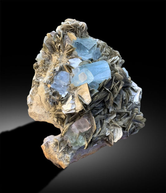Museum Grade Sky Blue Aquamarine Crystals with Fluorite and Muscovite from Nagar valley Hunza, Gilgit Baltistan - 3820 gram