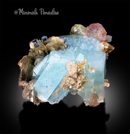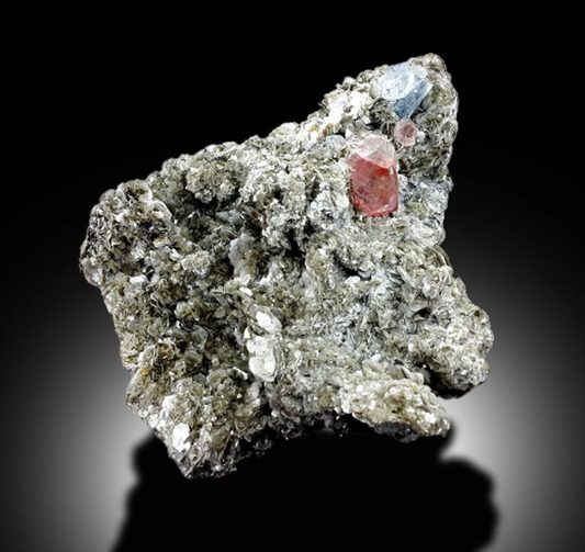 Aquamarine with Pink Fluorite and Mica, Aquamarine Specimen, Fluorite Specimen from Chumar Bakhoor Pakistan, 375 gram