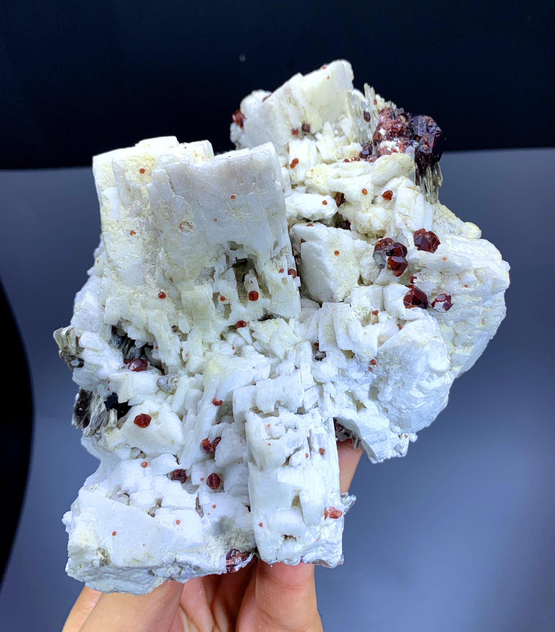 Red Spessartine Garnet with Aquamarines on...