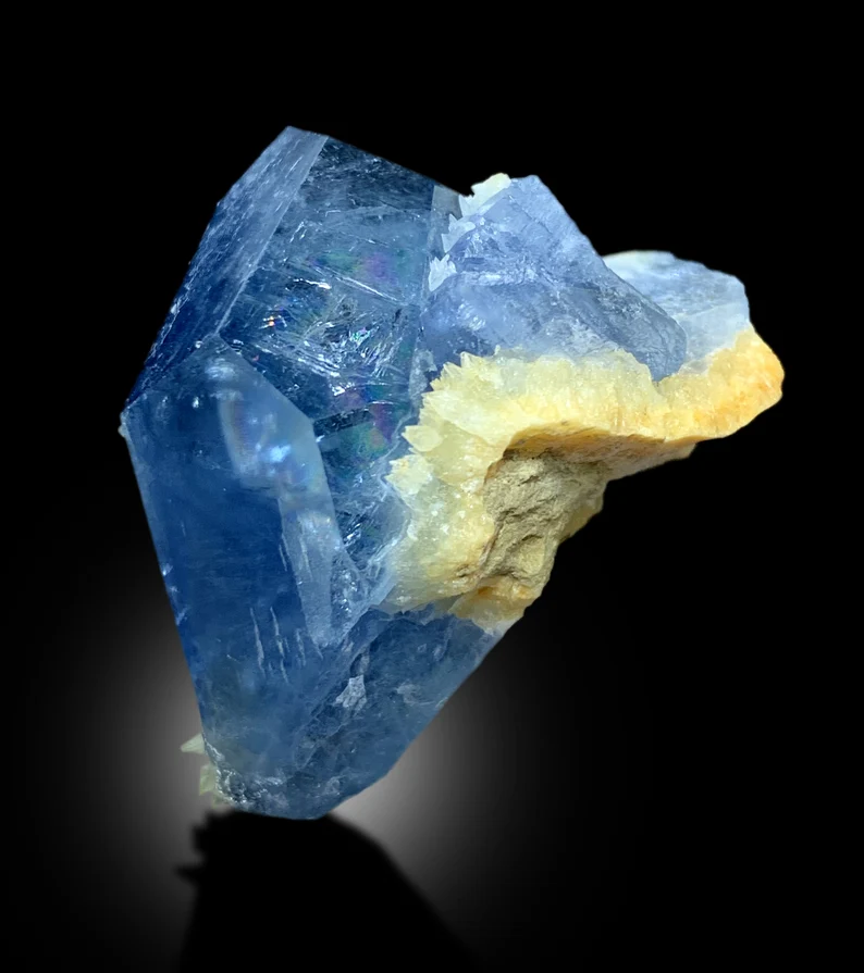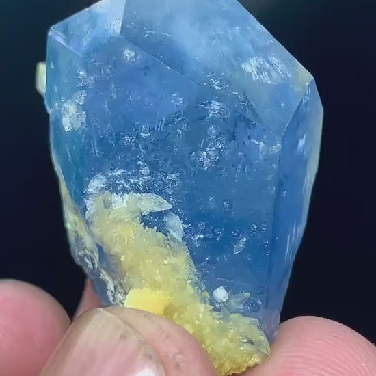 Terminated Blue Celestine Crystal With Calcite From Baghdis, Afghanistan