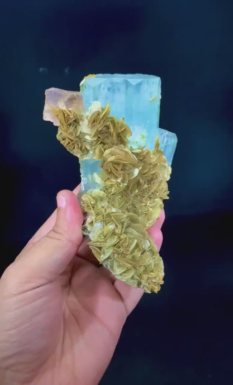 Pink Fluorite on Aquamarine Crystals, Fluorite Crystal, Aquamarine Specimen, Aquamarine for sale, Fluorite Specimen, Mineral Specimen, 288 g
