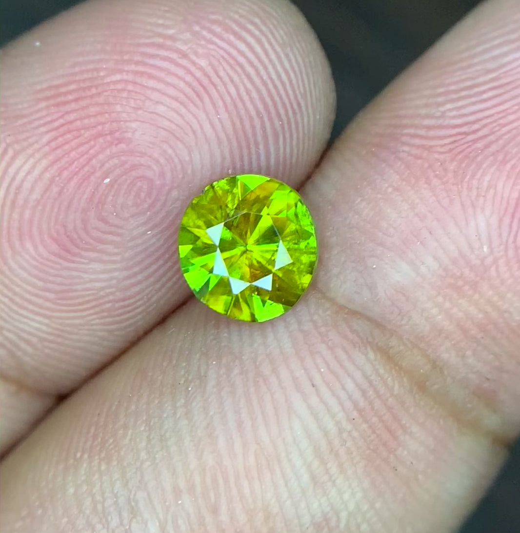 Full Fire Titanite Sphene Gemstone, Round Cut Faceted Sphene Cut Stone, Sphene Gemstone for Ring - 0.80 CT