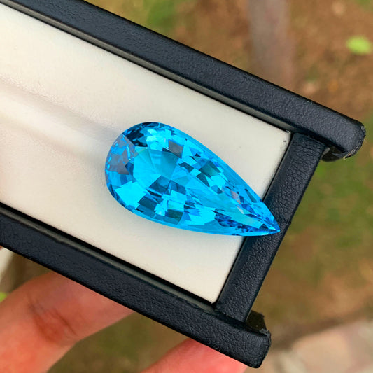 Swiss Blue Topaz Gemstone For Jewelry, Flawless Topaz Loose Gemstone, Pear Shape Topaz Jewelry Stone, 19.35 CT