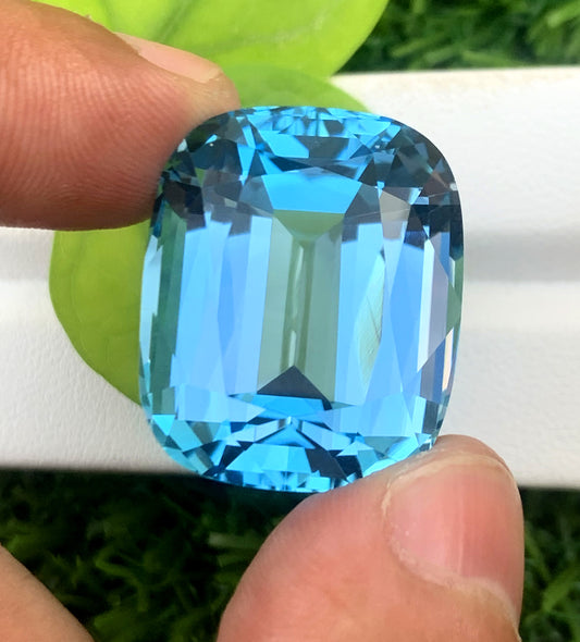 Cusshion Cut Swiss Blue Topaz Gemstone, Topaz Faceted Cut Stone, Loose Gemstone - 70 CT