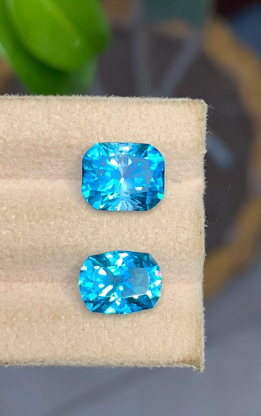 • Presenting 8.00 Carats Diamond Luster Blue Zircon Gemstone Pair
