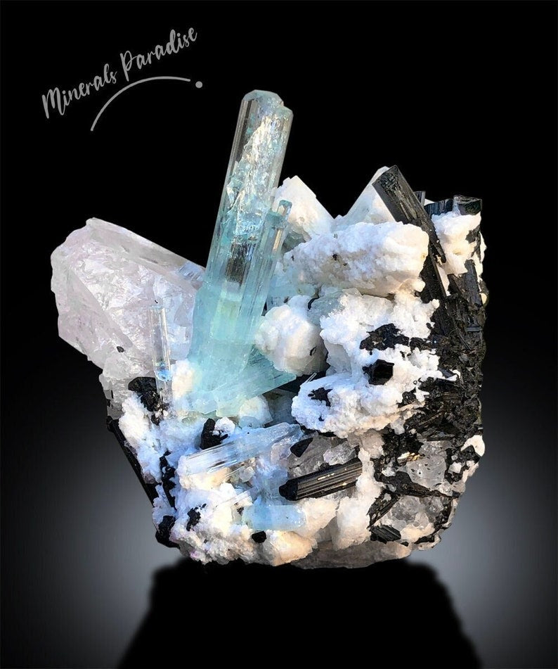 Aquamarine, Schorl, Quartz and Albite, Terminated Aquamarine, Aquamarine Specimen, Aquamarine Crystals, Combo Mineral.
