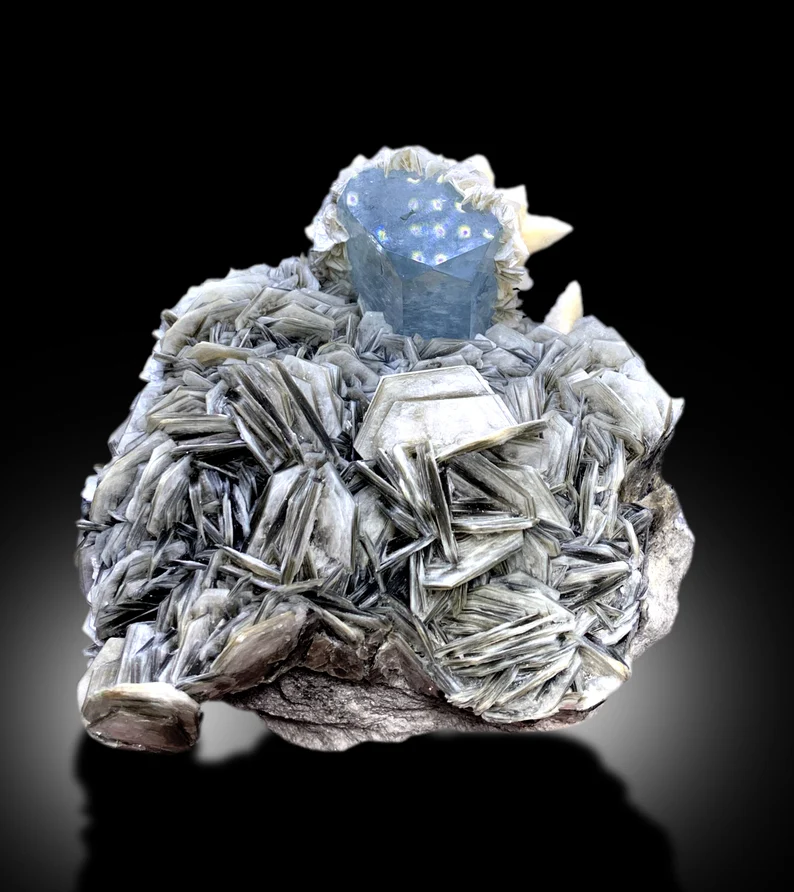 Blue Aquamarine Crystals With Calcite and Muscovite Mica Mineral Specimen From Nagar Pakistan