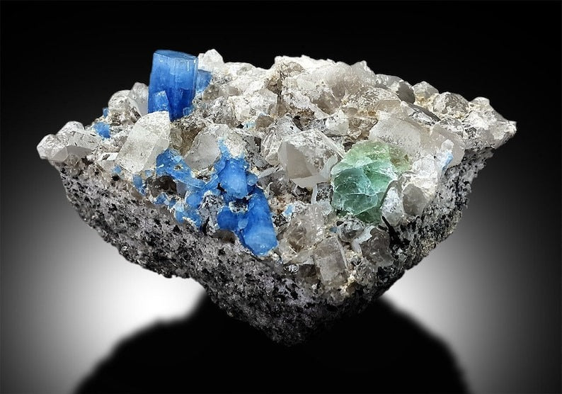 Blue Aquamarine , Topaz , Fluorite and Quartz Specimen from Skardu.