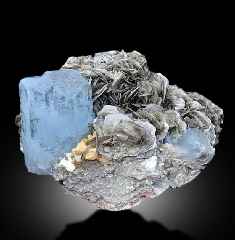 Blue Aquamarines With Muscovite Mica Mineral Specimen From Nagar PakistanAquamarines are complete and free of damage.Crystals have...