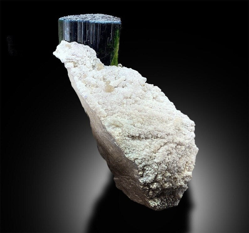 Blue Cap Tourmaline with Albite Mineral Specimen from Paproke.Tourmaline crystal is terminated.Tourmaline crystal has unique blue color...
