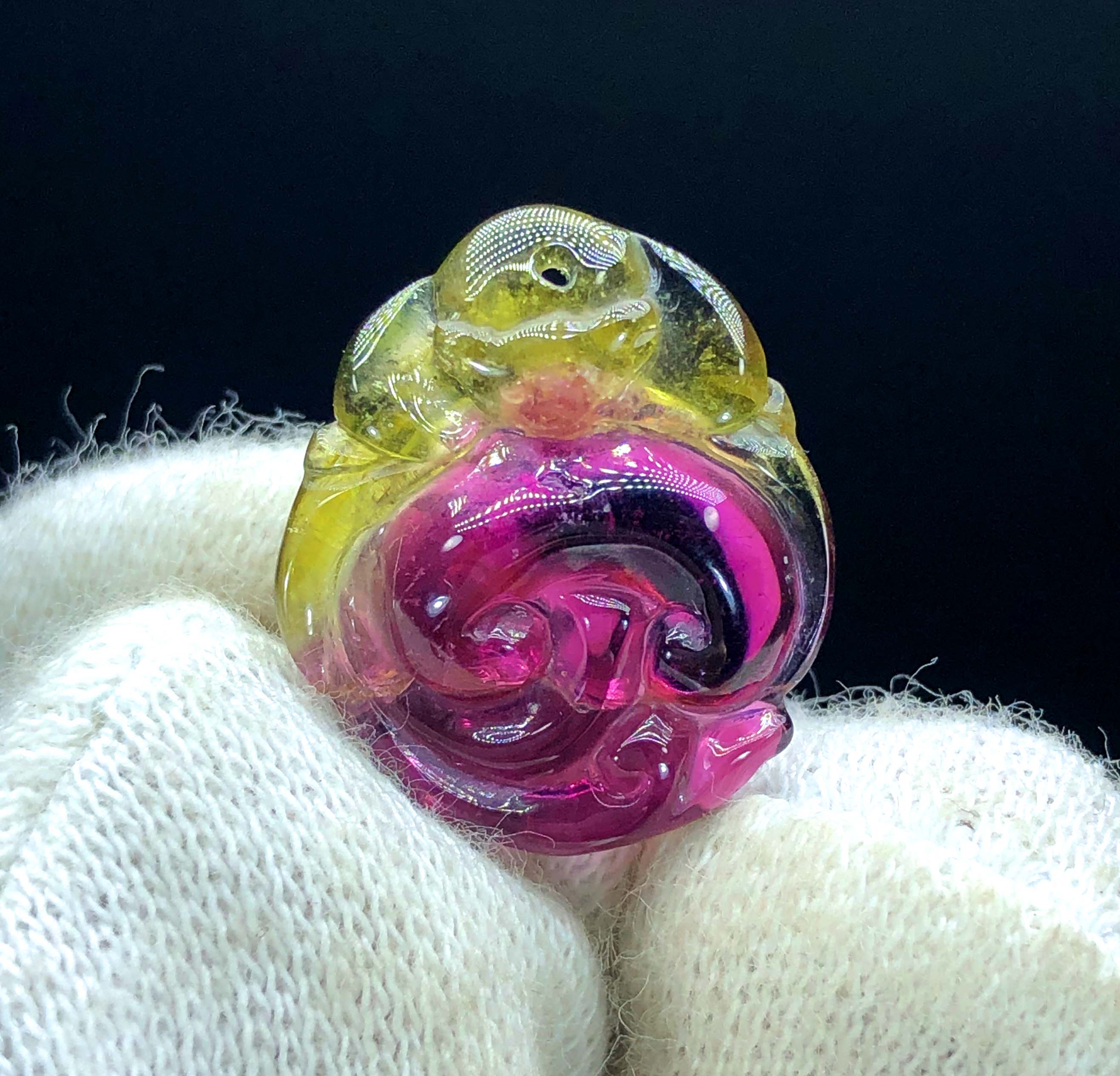 Top Quality Bicolor Tourmaline Carving, Tourmaline Necklace, Hand Carved, Polished Tourmaline Carving