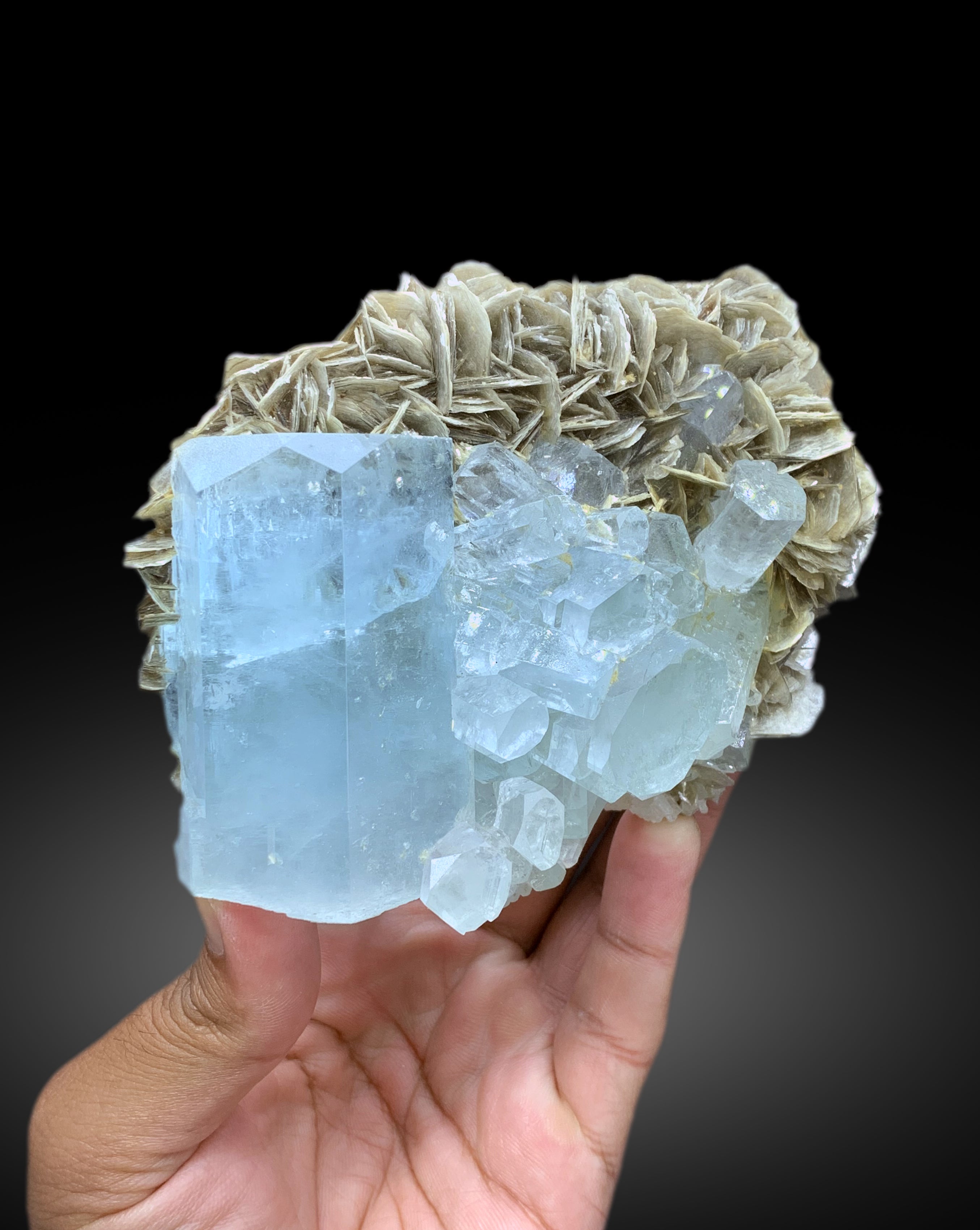 Exceptional Sky Blue Aquamarine on Muscovite from Pakistan