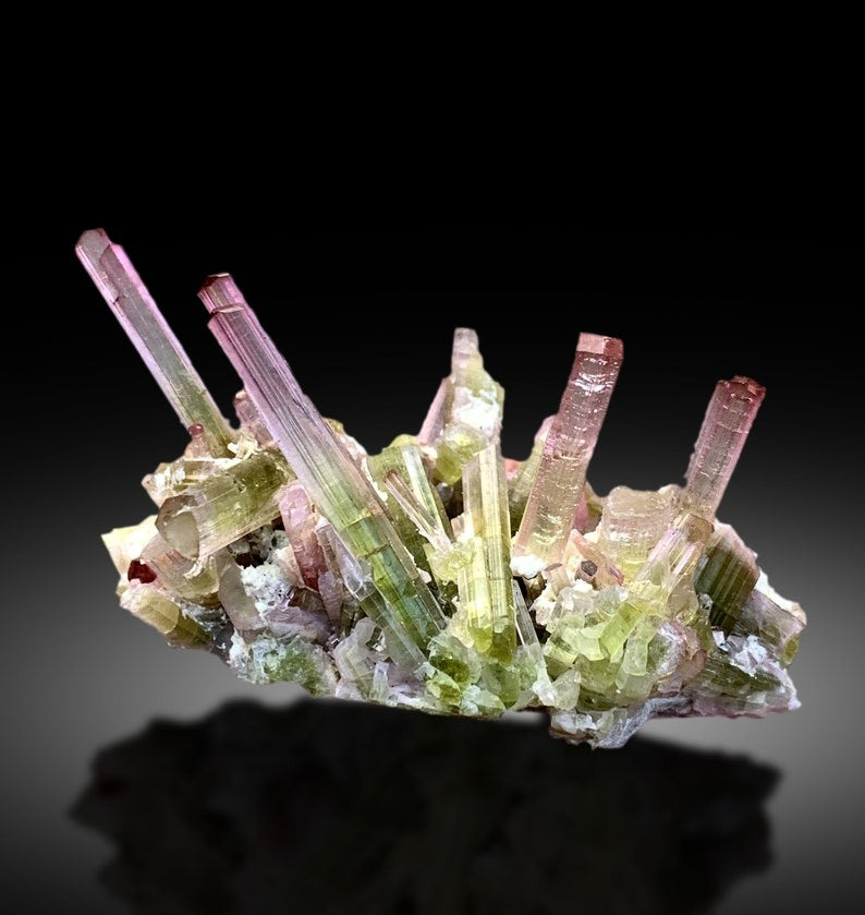 Exquisite Bicolor Tourmaline Cluster on Matrix, Tourmaline Specimen, Tourmaline from Paprok AfghanistanTourmaline Crystals have terminated and damage...