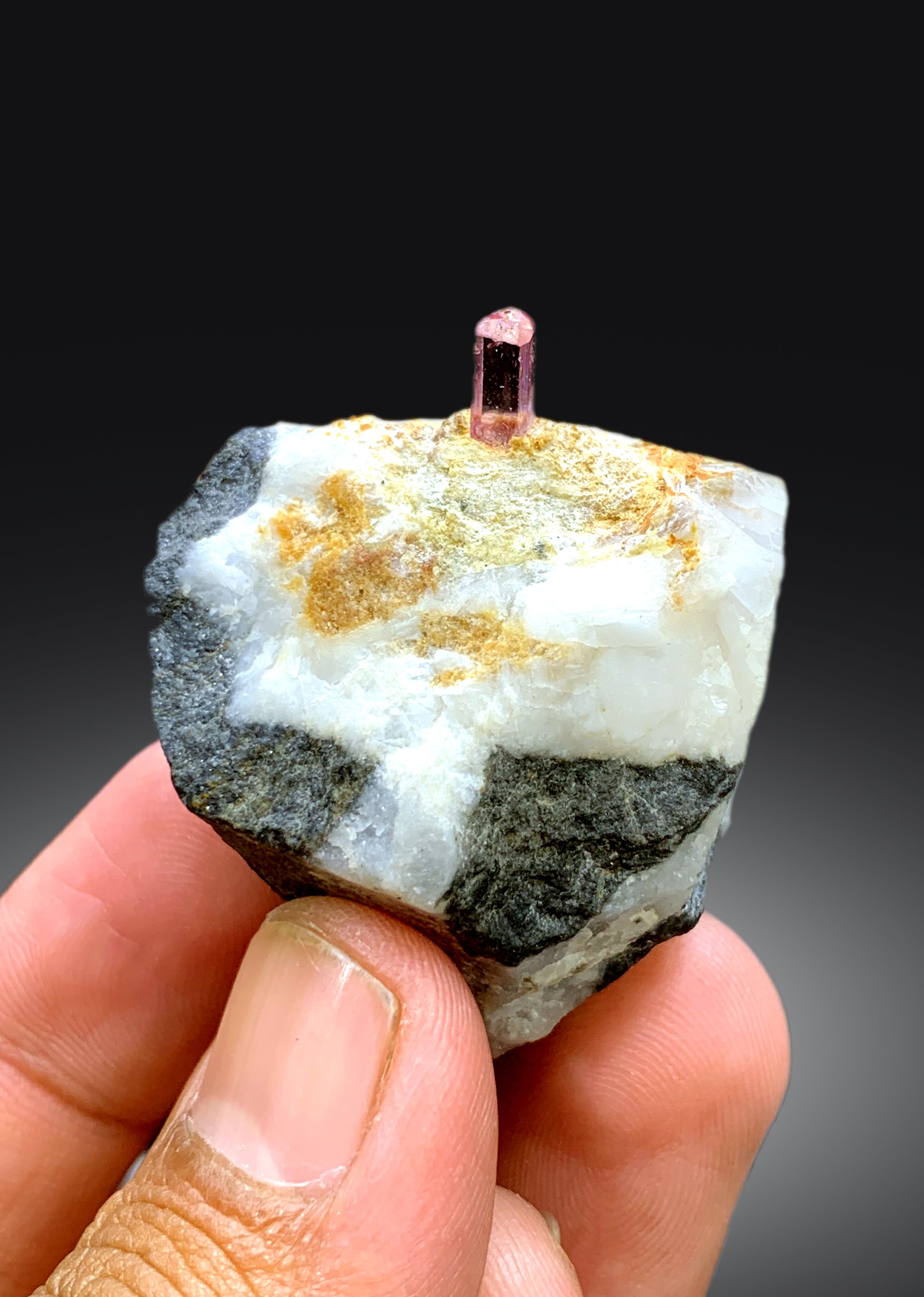 This impressive pink Topaz crystal on matrix exhibiting amazing color. It is gemmy, lustrous and super shiny. Crystal termination is self healed. its perfect self standing and aesthetic specimen with facet grade crystal.