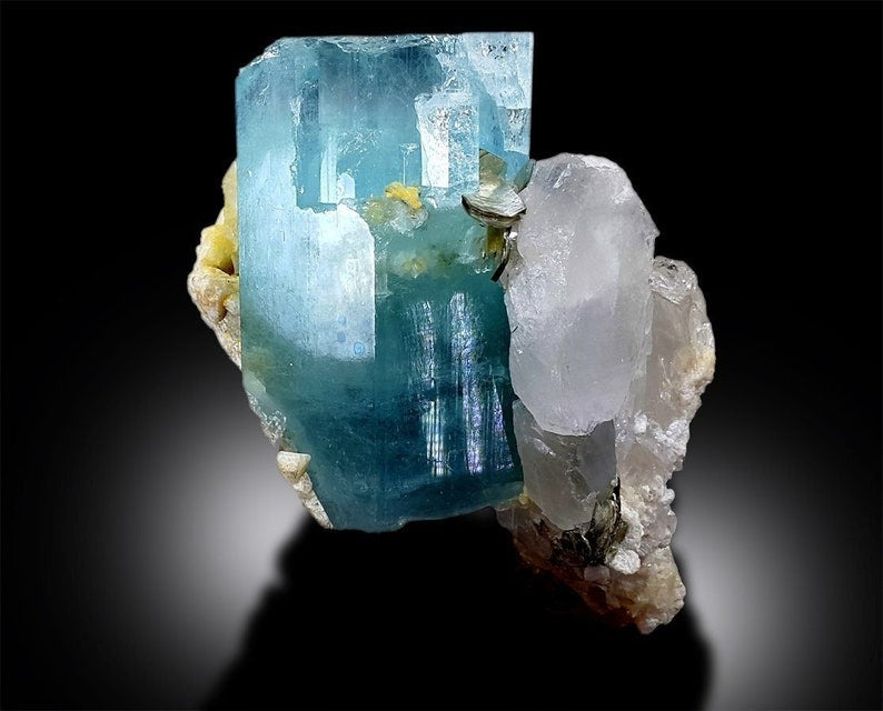 Aquamarine Specimen , Natural Aquamarine Crystal with Quartz and Muscovite Mica from Gilgit Pakistan.