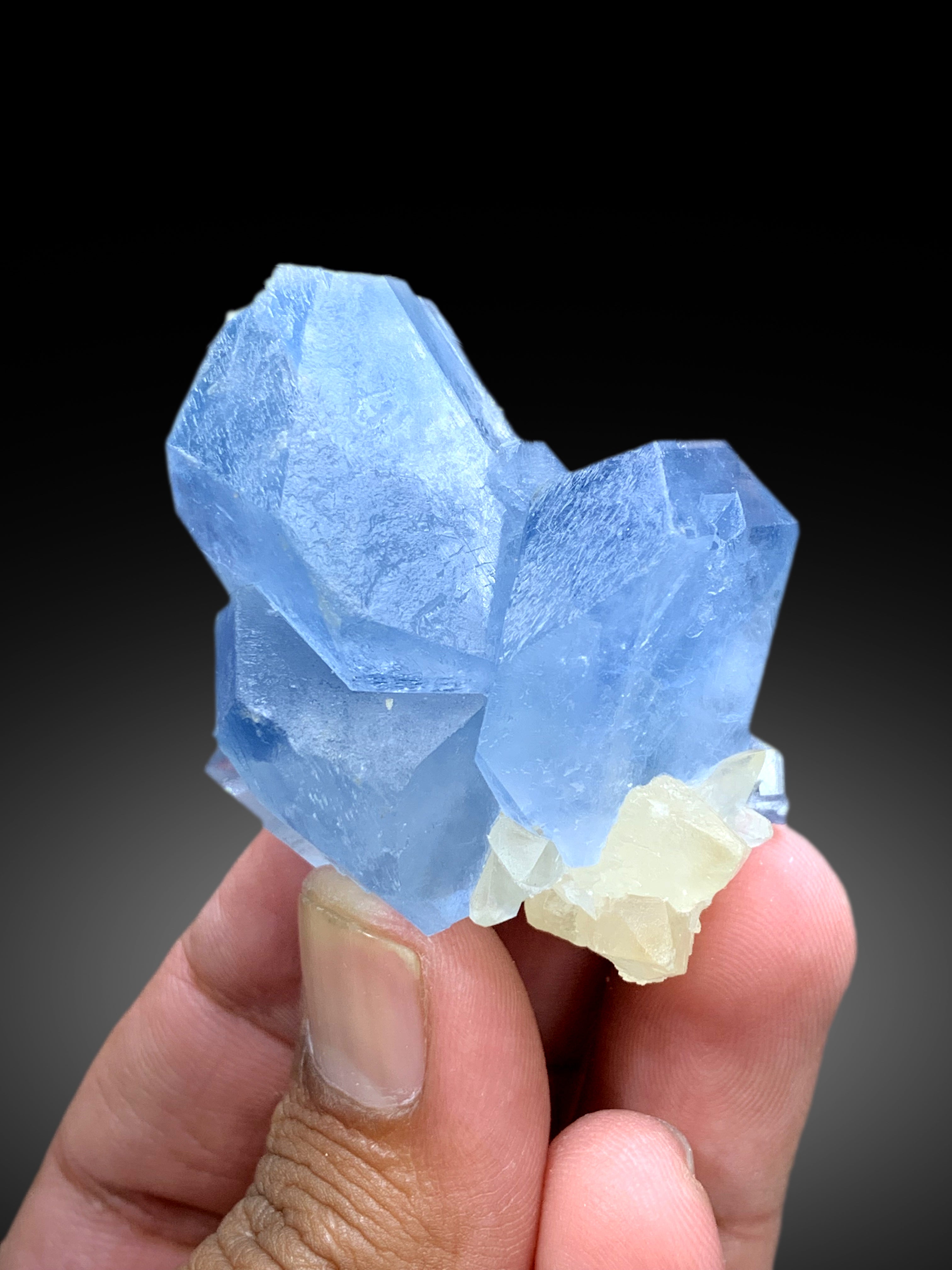 Specimen contains cluster of terminated and free of damage blue celestine crystals,