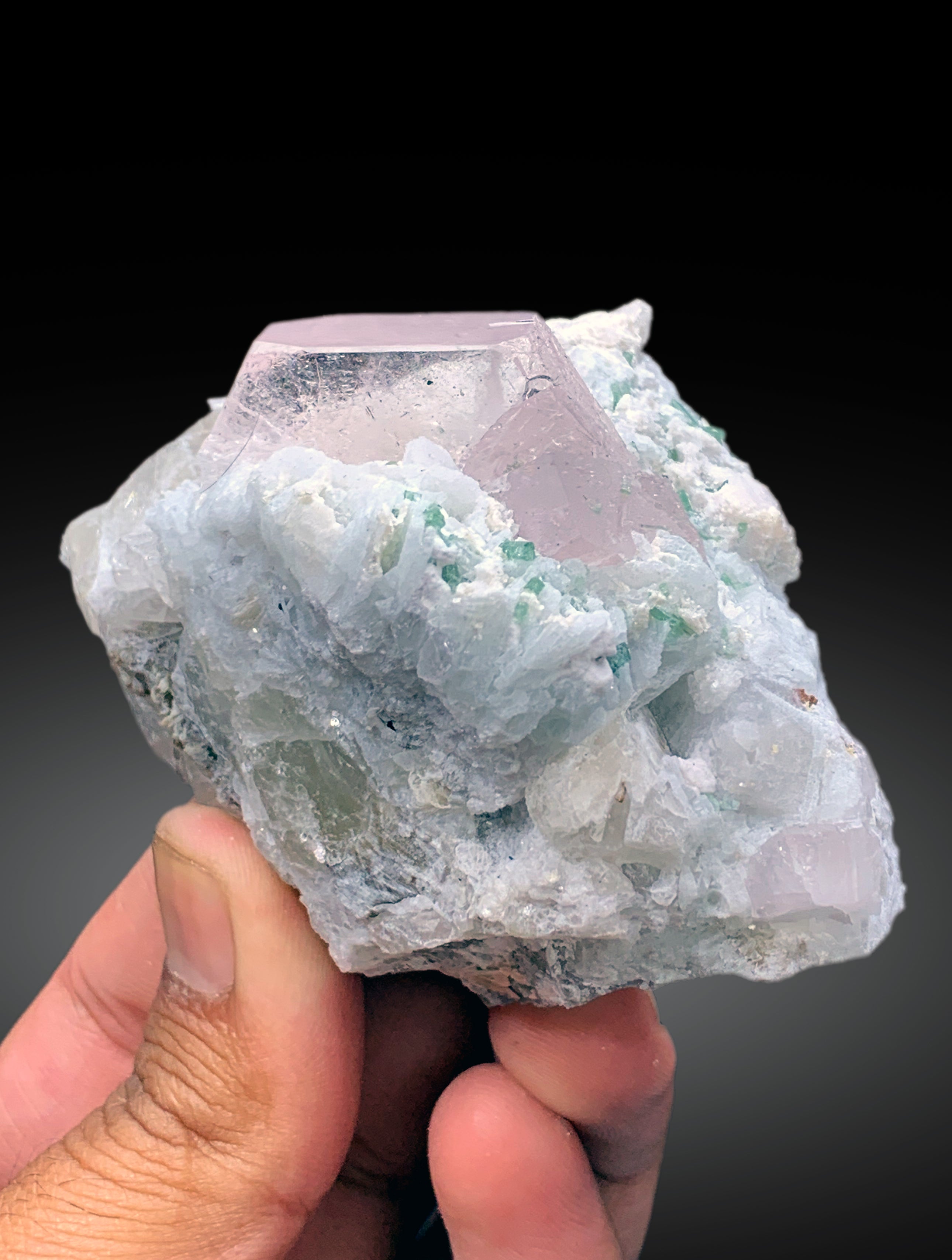 Natural Pink Color Morganite with Green Tourmalines and Albite, Morganite Specimen, Fine Minerals