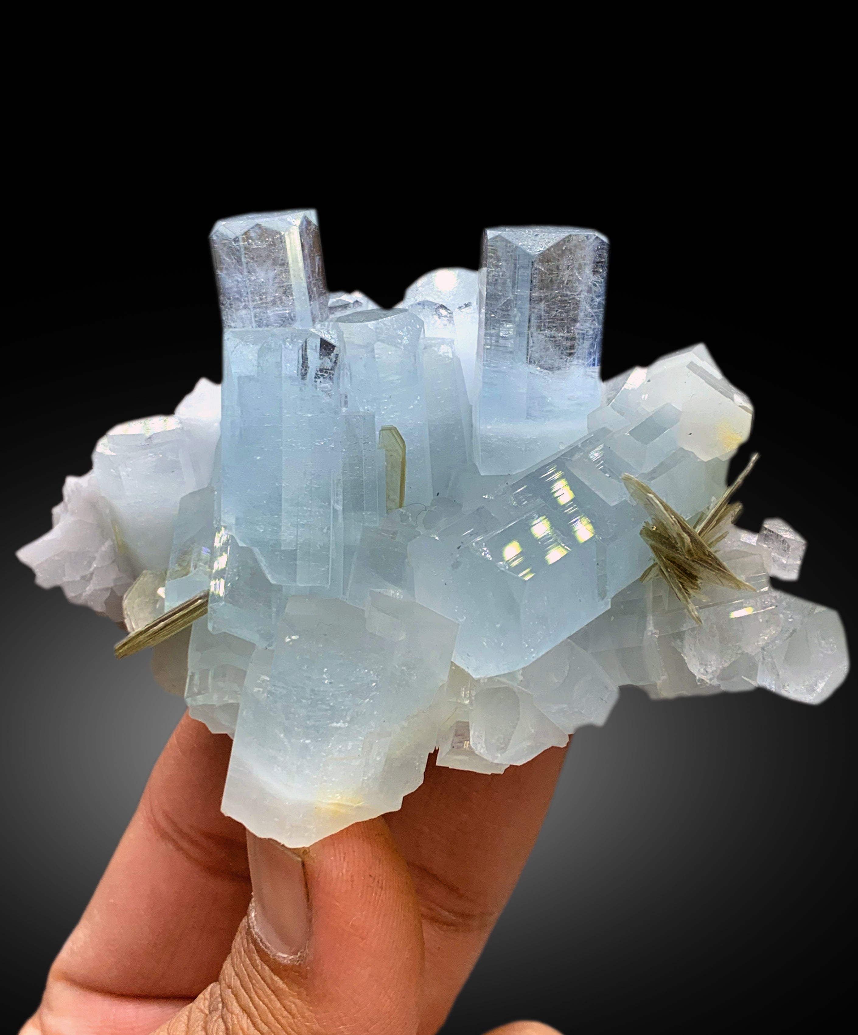 Natural Sky Blue Aquamarine Cluster with Mica from Pakistan