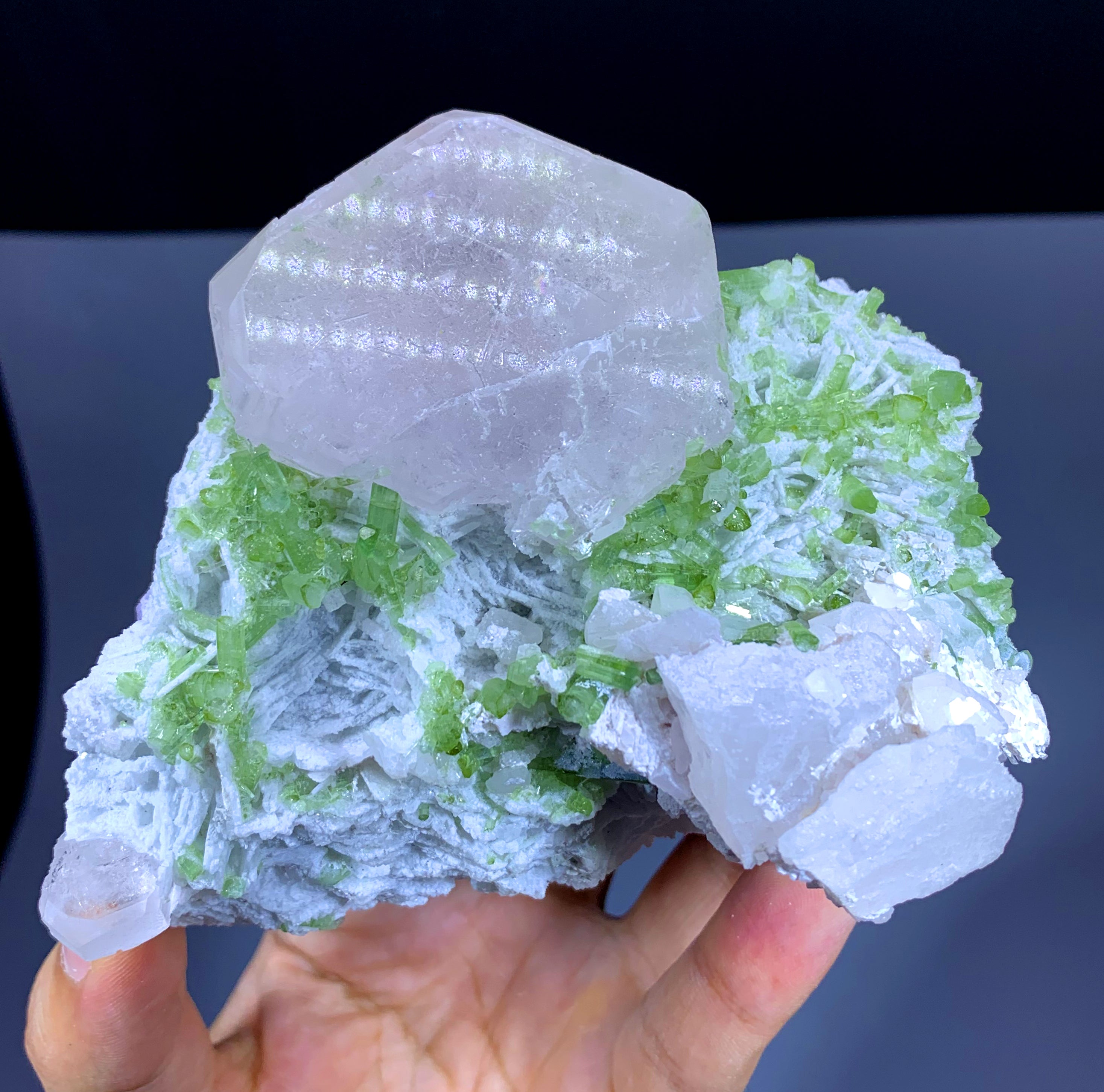 Pink Morganite with Green Tourmalines on Albite from Afghanistan