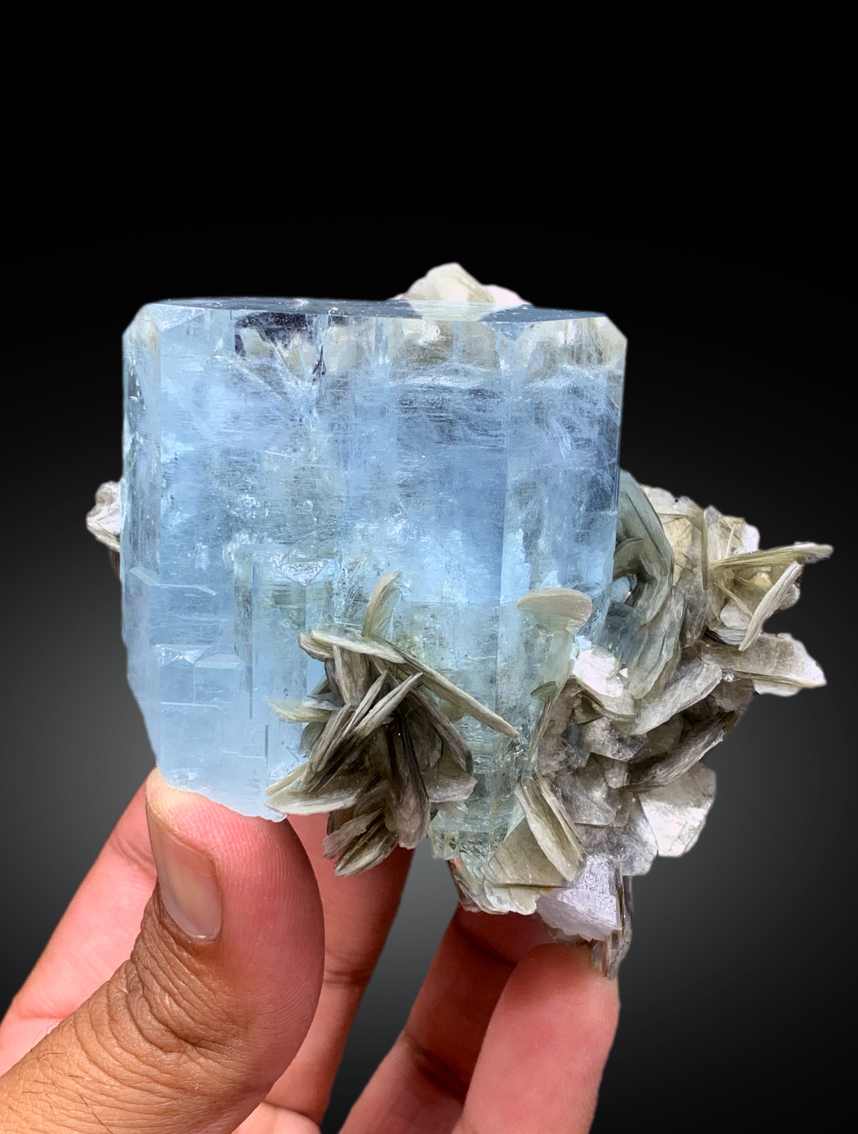 Sky Blue Color Aquamarine Crystal with Muscovite Mica from Nagar valley Hunza, Gilgit Pakistan